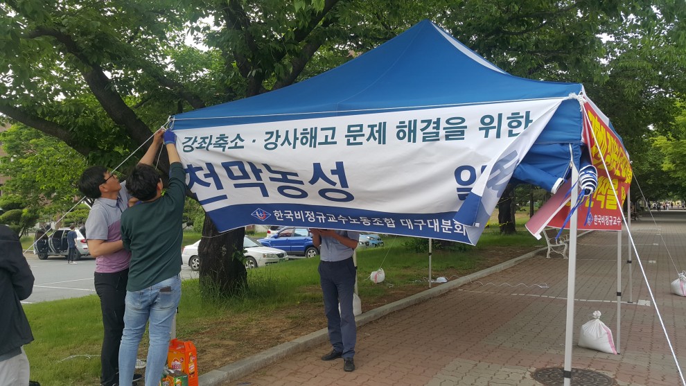 대학의 강좌축소‧강사해고 문제 해결과 강사법 안착을 위한 천막 농성(0515, 1일차) 페이지 정보 작성자 대구대분회 작성일20-10-11 23:30 조회3,493회 댓글0건 이전글 다음글 목록 본문 천막농성 1일차 풍경입니다. 함께 해주신 조합원 선생님들께 감사드립니다.아울러 향후 투쟁에 함께 해주실 것을 여러 조합원 선생님께 간곡히 부탁드립니다. 2019.05.15 19:43 댓글목록 등록된 댓글이 없습니다. 이전글 다음글 목록